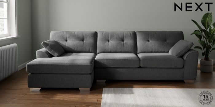 7.2.10 Buy Stamford Buttoned Back Large Sofa Chaise - Left Hand Chunky Texture Dark Grey Large Square Angle - Chrome Metal from the Next UK online shop Click here to use our accessible website