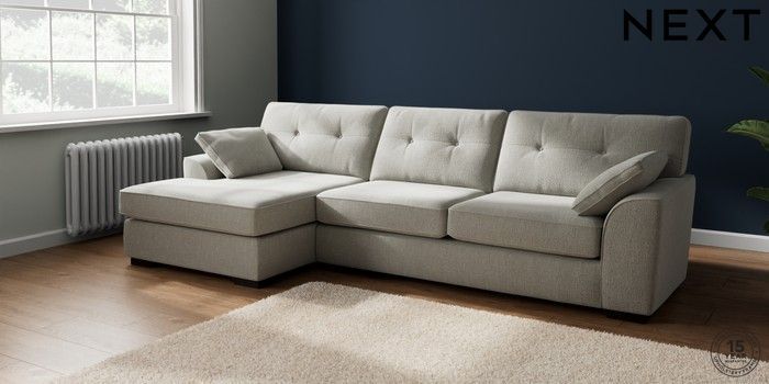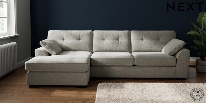 7.2.10 Buy Stamford Buttoned Back Large Sofa Chaise - Left Hand Chunky Texture Dove Large Square Angle - Dark from the Next UK online shop Click here to use our accessible website