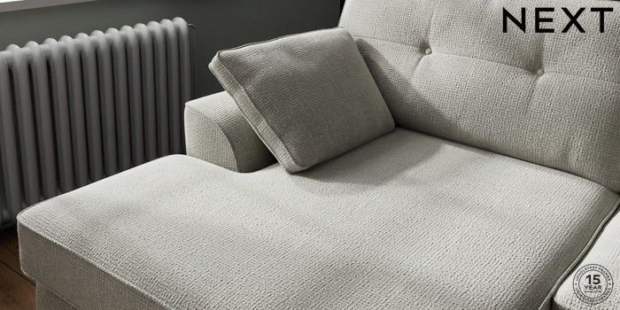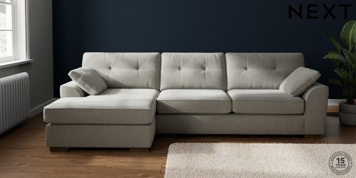 7.2.10 Buy Stamford Buttoned Back Large Sofa Chaise - Left Hand Chunky Texture Dove Large Square Angle - Mid from the Next UK online shop Click here to use our accessible website