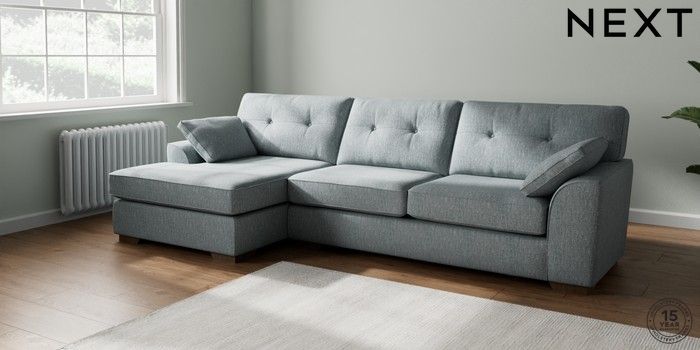 7.2.6 Buy Stamford Buttoned Back Large Sofa Chaise - Left Hand Chunky Weave Mid Blue Large Square Angle - Mid from the Next UK online shop Click here to use our accessible website