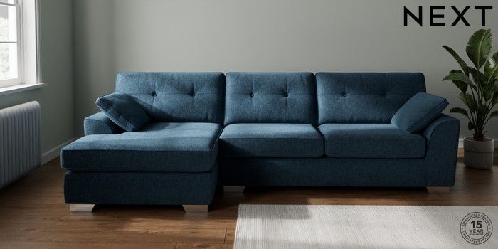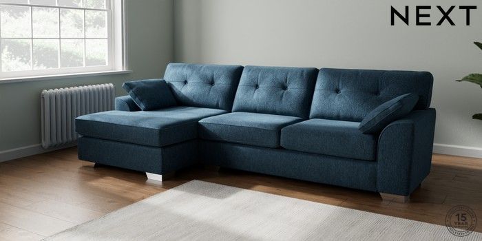 7.2.10 Buy Stamford Buttoned Back Large Sofa Chaise - Left Hand Cotswold Chenille Dark Blue Large Square Angle - Chrome Metal from the Next UK online shop Click here to use our accessible website