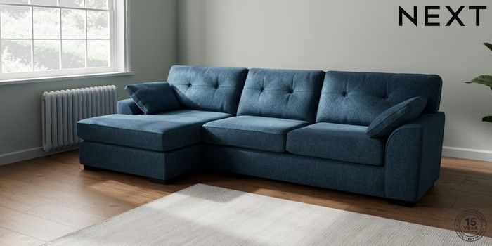 7.2.10 Buy Stamford Buttoned Back Large Sofa Chaise - Left Hand Cotswold Chenille Dark Blue Large Square Angle - Dark from the Next UK online shop Click here to use our accessible website