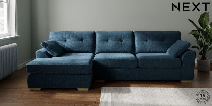 7.2.10 Buy Stamford Buttoned Back Large Sofa Chaise - Left Hand Cotswold Chenille Dark Blue Large Square Angle - Light from the Next UK online shop Click here to use our accessible website