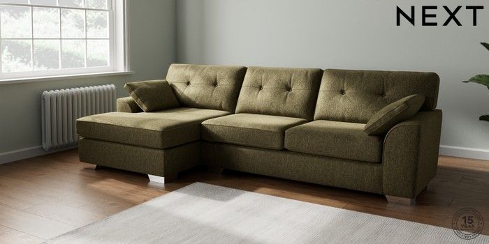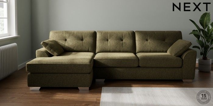 7.2.10 Buy Stamford Buttoned Back Large Sofa Chaise - Left Hand Cotswold Chenille Dark Green Large Square Angle - Chrome Metal from the Next UK online shop Click here to use our accessible website