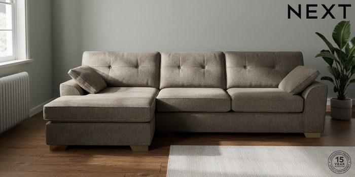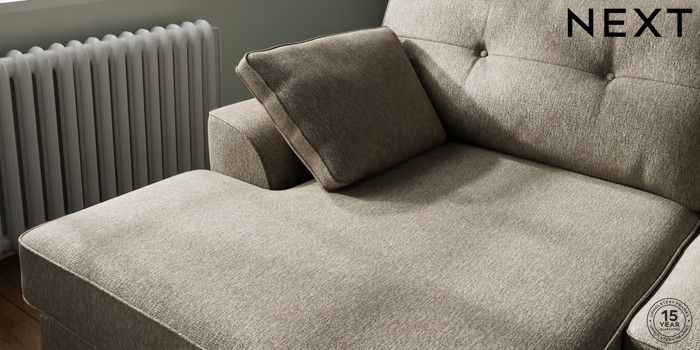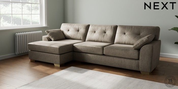 7.2.6 Buy Stamford Buttoned Back Large Sofa Chaise - Left Hand Cotswold Chenille Mid Mink Brown Large Square Angle - Brushed Brass from the Next UK online shop Click here to use our accessible website