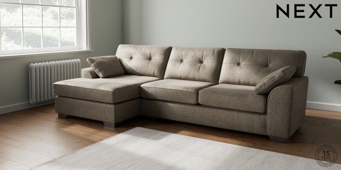 6.12.1 Buy Stamford Buttoned Back Large Sofa Chaise - Left Hand Cotswold Chenille Mid Mink Brown Large Square Angle - Gunmetal from the Next UK online shop Click here to use our accessible website