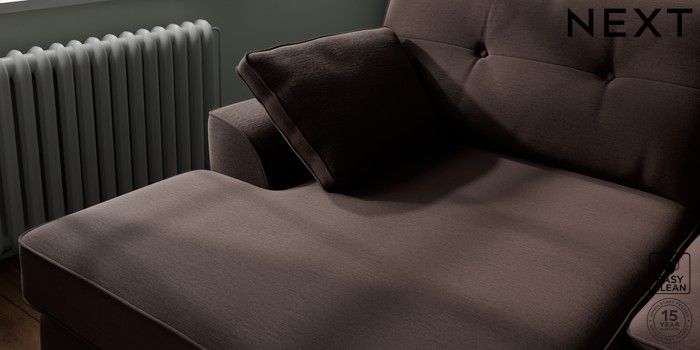 7.2.10 Buy Stamford Buttoned Back Large Sofa Chaise - Left Hand Fine Chenille Easy Clean Chocolate Brown Large Square Angle - Brushed Brass from the Next UK online shop Click here to use our accessible website