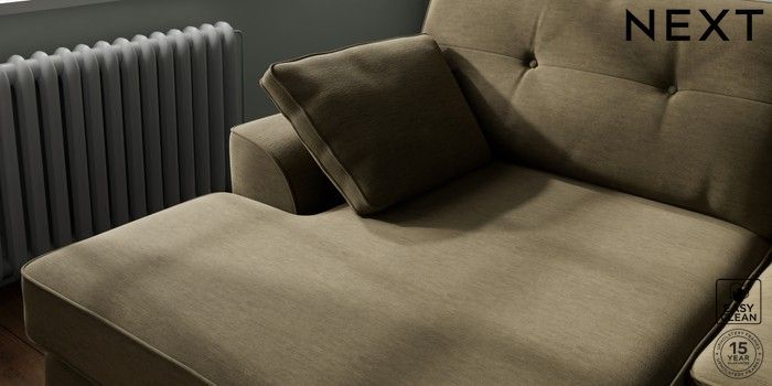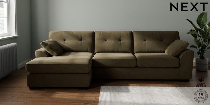 7.2.10 Buy Stamford Buttoned Back Large Sofa Chaise - Left Hand Fine Chenille Easy Clean Dark Moss Green Large Square Angle - Dark from the Next UK online shop Click here to use our accessible website