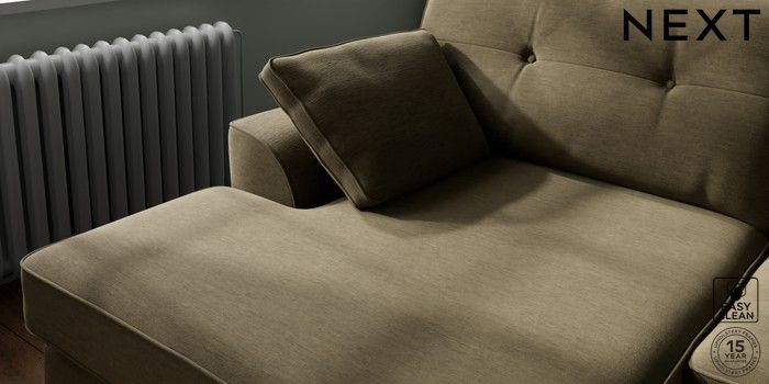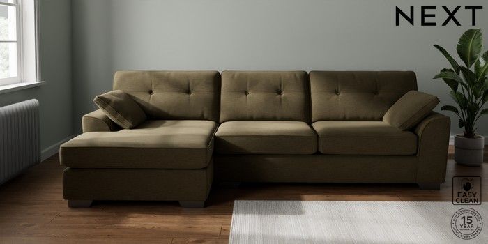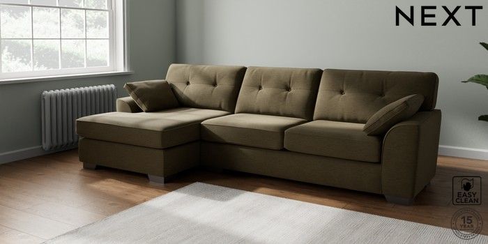 7.2.6 Buy Stamford Buttoned Back Large Sofa Chaise - Left Hand Fine Chenille Easy Clean Dark Moss Green Large Square Angle - Gunmetal from the Next UK online shop Click here to use our accessible website