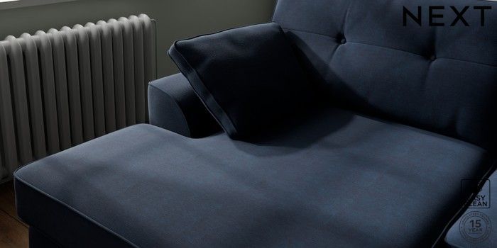 7.2.10 Buy Stamford Buttoned Back Large Sofa Chaise - Left Hand Fine Chenille Easy Clean Dark Navy Blue Large Square Angle - Dark from the Next UK online shop Click here to use our accessible website