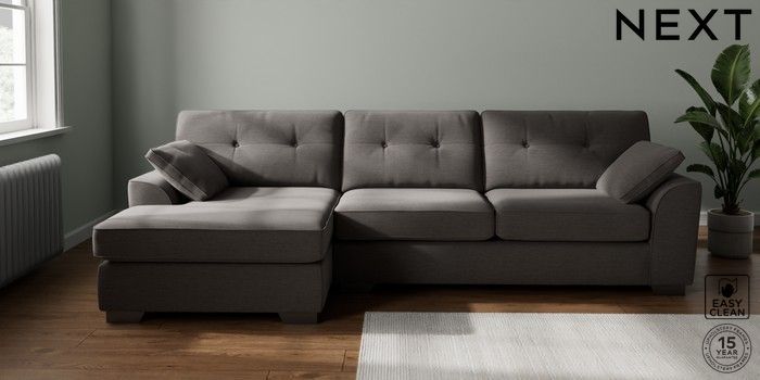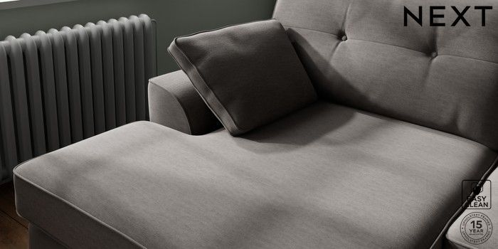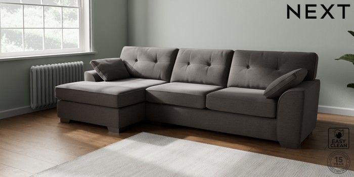 7.2.10 Buy Stamford Buttoned Back Large Sofa Chaise - Left Hand Fine Chenille Easy Clean Dark Smoke Grey Large Square Angle - Gunmetal from the Next UK online shop Click here to use our accessible website