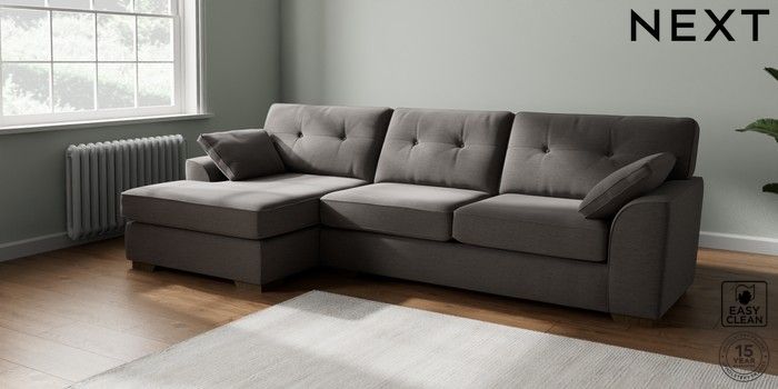 7.2.6 Buy Stamford Buttoned Back Large Sofa Chaise - Left Hand Fine Chenille Easy Clean Dark Smoke Grey Large Square Angle - Mid from the Next UK online shop Click here to use our accessible website