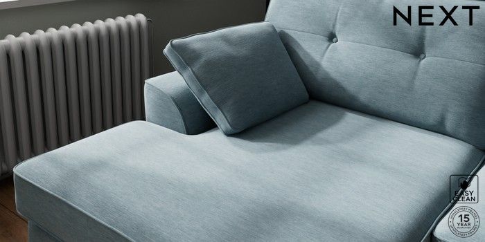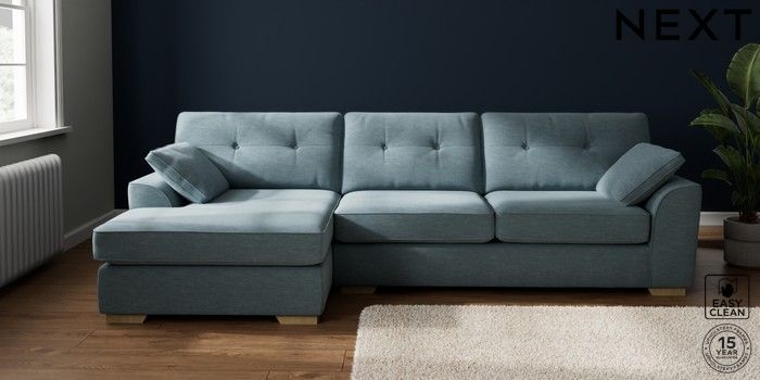 7.2.6 Buy Stamford Buttoned Back Large Sofa Chaise - Left Hand Fine Chenille Easy Clean Mid Blue Large Square Angle - Light from the Next UK online shop Click here to use our accessible website