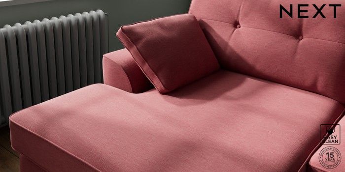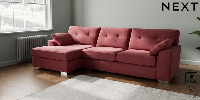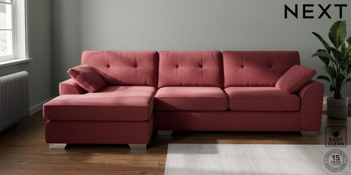 7.2.10 Buy Stamford Buttoned Back Large Sofa Chaise - Left Hand Fine Chenille Easy Clean Mid Pink Large Square Angle - Chrome Metal from the Next UK online shop Click here to use our accessible website