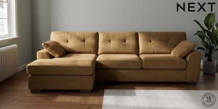 7.2.6 Buy Stamford Buttoned Back Large Sofa Chaise - Left Hand Luxe Chenille Honey Yellow Large Square Angle - Gunmetal from the Next UK online shop Click here to use our accessible website