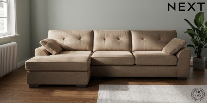 7.2.10 Buy Stamford Buttoned Back Large Sofa Chaise - Left Hand Luxe Chenille Mid Camel Beige Large Square Angle - Gunmetal from the Next UK online shop Click here to use our accessible website