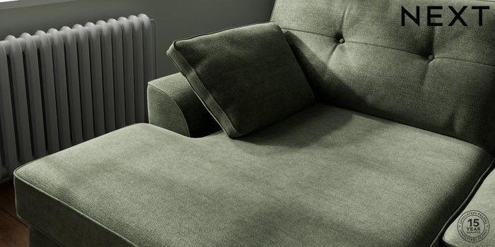 7.2.6 Buy Stamford Buttoned Back Large Sofa Chaise - Left Hand Luxe Chenille Mid Green Large Square Angle - Light from the Next UK online shop Click here to use our accessible website