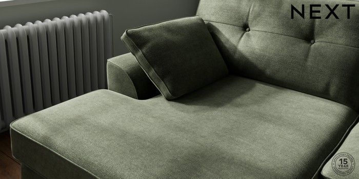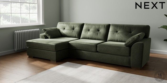 7.2.6 Buy Stamford Buttoned Back Large Sofa Chaise - Left Hand Luxe Chenille Mid Green Large Square Angle - Mid from the Next UK online shop Click here to use our accessible website