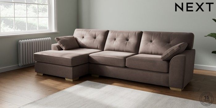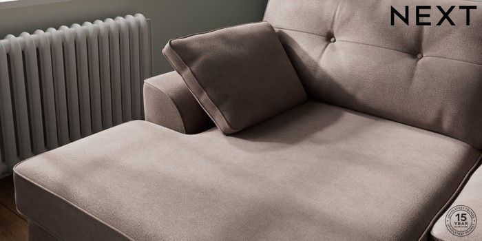 7.2.10 Buy Stamford Buttoned Back Large Sofa Chaise - Left Hand Luxe Chenille Mink Brown Large Square Angle - Light from the Next UK online shop Click here to use our accessible website