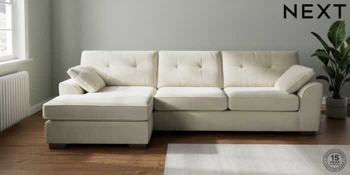 7.0.3 Buy Stamford Buttoned Back Large Sofa Chaise - Left Hand Luxe Chenille Oyster Large Square Angle - Gunmetal from the Next UK online shop Click here to use our accessible website