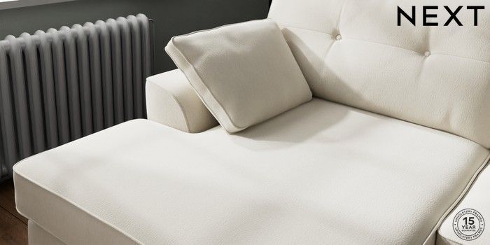 7.2.10 Buy Stamford Buttoned Back Large Sofa Chaise - Left Hand Relaxed Linen Look Oyster Large Square Angle - Gunmetal from the Next UK online shop Click here to use our accessible website