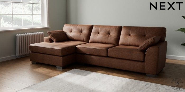 7.3.1 Buy Stamford Buttoned Back Large Sofa Chaise - Left Hand Monza Faux Leather Easy Clean Chestnut Brown Large Square Angle - Gunmetal from the Next UK online shop Click here to use our accessible website