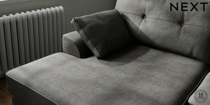 7.2.10 Buy Stamford Buttoned Back Large Sofa Chaise - Left Hand Monza Faux Leather Easy Clean Dark Grey Large Square Angle - Mid from the Next UK online shop Click here to use our accessible website