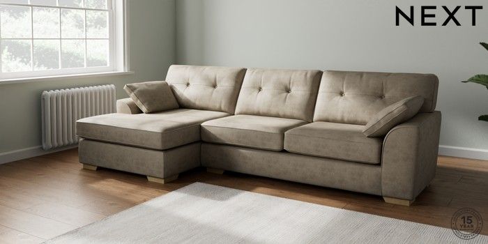 6.12.1 Buy Stamford Buttoned Back Large Sofa Chaise - Left Hand Monza Faux Leather Easy Clean Mink Brown Large Square Angle - Light from the Next UK online shop Click here to use our accessible website