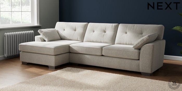 7.2.6 Buy Stamford Buttoned Back Large Sofa Chaise - Left Hand Multi Weave Light Blue Large Square Angle - Gunmetal from the Next UK online shop Click here to use our accessible website