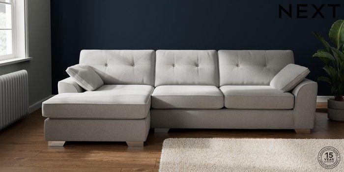 7.2.10 Buy Stamford Buttoned Back Large Sofa Chaise - Left Hand Natural Mix Light Grey Large Square Angle - Chrome Metal from the Next UK online shop Click here to use our accessible website