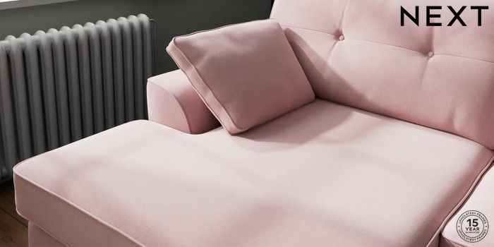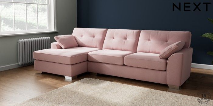 7.2.10 Buy Stamford Buttoned Back Large Sofa Chaise - Left Hand Natural Mix Light Rose Pink Large Square Angle - Chrome Metal from the Next UK online shop Click here to use our accessible website