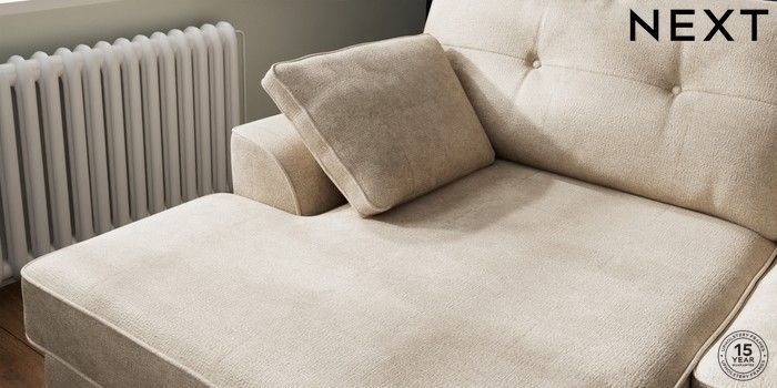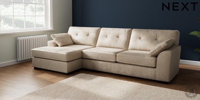 7.2.6 Buy Stamford Buttoned Back Large Sofa Chaise - Left Hand Plush Chenille Light Natural Large Square Angle - Dark from the Next UK online shop Click here to use our accessible website