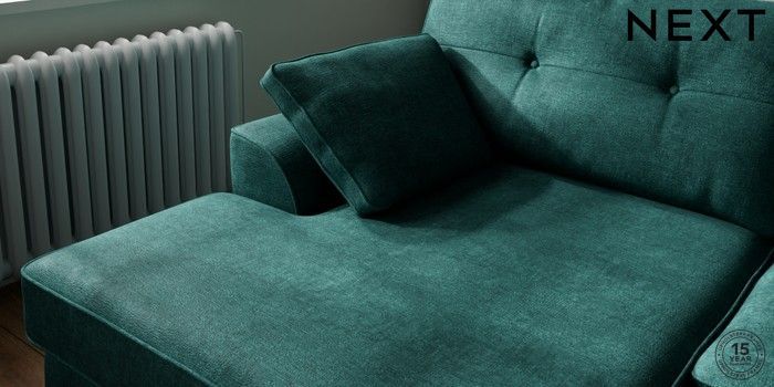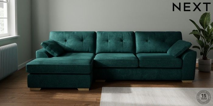 7.2.10 Buy Stamford Buttoned Back Large Sofa Chaise - Left Hand Plush Chenille Dark Teal Green Large Square Angle - Light from the Next UK online shop Click here to use our accessible website