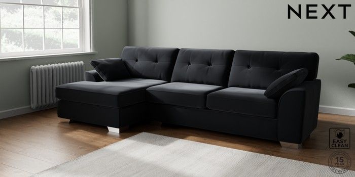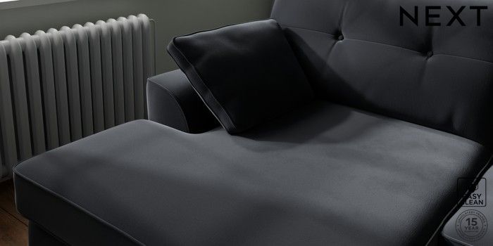 7.2.10 Buy Stamford Buttoned Back Large Sofa Chaise - Left Hand Plush Velvet Easy Clean Charcoal Grey Large Square Angle - Chrome Metal from the Next UK online shop Click here to use our accessible website