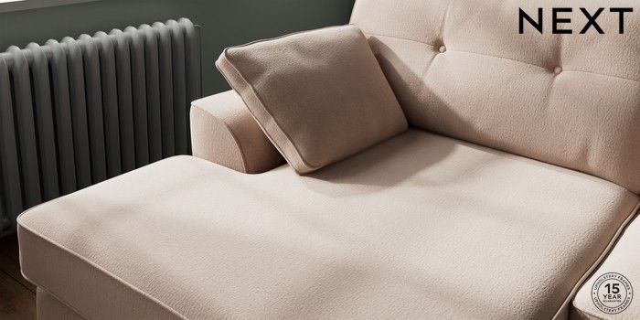 7.3.1 Buy Stamford Buttoned Back Large Sofa Chaise - Left Hand Relaxed Linen Look Mid Natural Large Square Angle - Gunmetal from the Next UK online shop Click here to use our accessible website