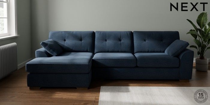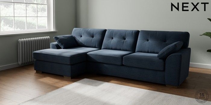 7.2.6 Buy Stamford Buttoned Back Large Sofa Chaise - Left Hand Ripple Chenille Dark Blue Large Square Angle - Mid from the Next UK online shop Click here to use our accessible website