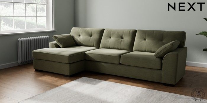 7.2.10 Buy Stamford Buttoned Back Large Sofa Chaise - Left Hand Ripple Chenille Mid Moss Green Large Square Angle - Dark from the Next UK online shop Click here to use our accessible website