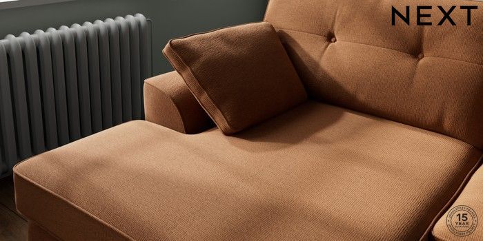 7.2.10 Buy Stamford Buttoned Back Large Sofa Chaise - Left Hand Ripple Chenille Mid Rust Brown Large Square Angle - Dark from the Next UK online shop Click here to use our accessible website