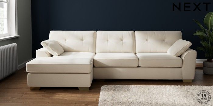 7.2.10 Buy Stamford Buttoned Back Large Sofa Chaise - Left Hand Ripple Chenille Oyster Large Square Angle - Brushed Brass from the Next UK online shop Click here to use our accessible website