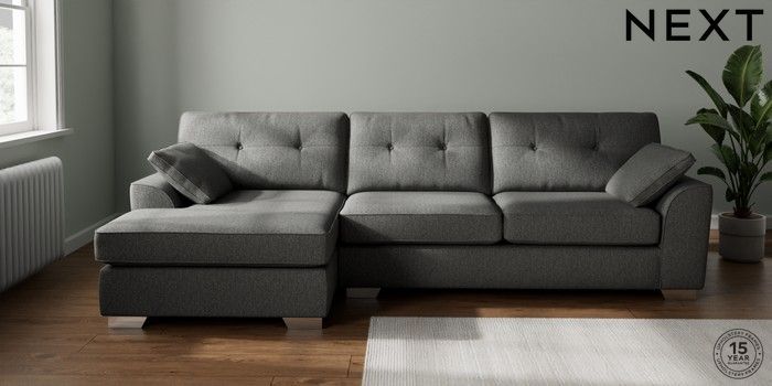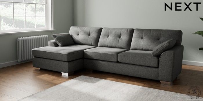 7.2.10 Buy Stamford Buttoned Back Large Sofa Chaise - Left Hand Tweedy Chenille Dark Grey Large Square Angle - Chrome Metal from the Next UK online shop Click here to use our accessible website