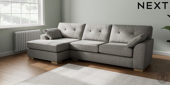7.2.6 Buy Stamford Buttoned Back Large Sofa Chaise - Left Hand Tweedy Chenille Mid Grey Large Square Angle - Light from the Next UK online shop Click here to use our accessible website