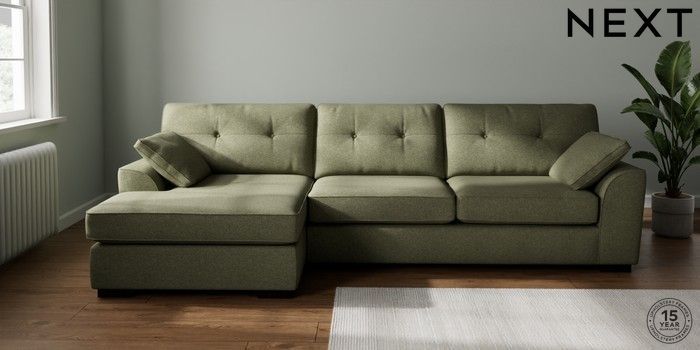 7.2.10 Buy Stamford Buttoned Back Large Sofa Chaise - Left Hand Tweedy Chenille Mid Moss Green Large Square Angle - Dark from the Next UK online shop Click here to use our accessible website