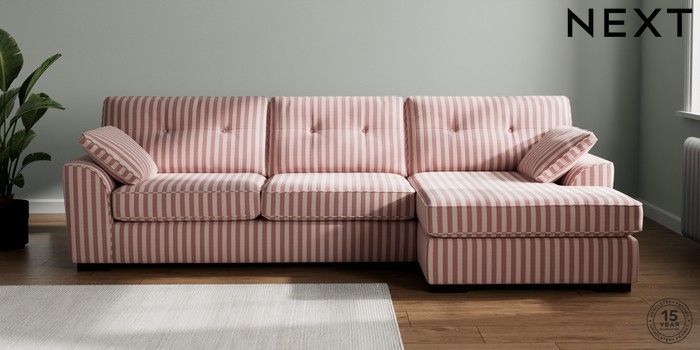 7.3.1 Buy Stamford Buttoned Back Large Sofa Chaise - Right Hand Bold Chenille Stripe Dark Pink Large Square Angle - Dark from the Next UK online shop Click here to use our accessible website