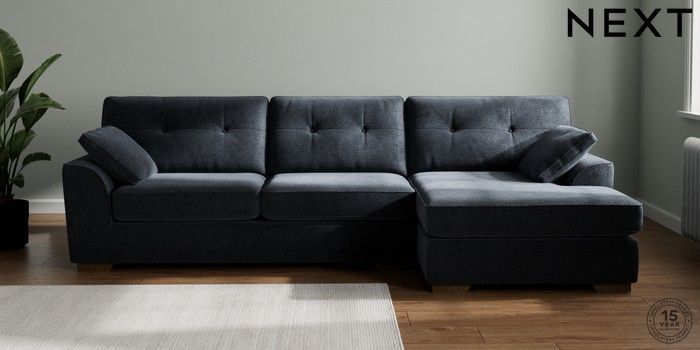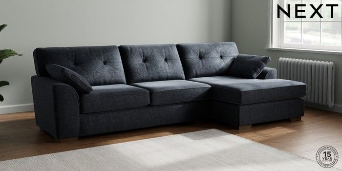 7.2.10 Buy Stamford Buttoned Back Large Sofa Chaise - Right Hand Boucle Chenille Dark Slate Blue Large Square Angle - Mid from the Next UK online shop Click here to use our accessible website