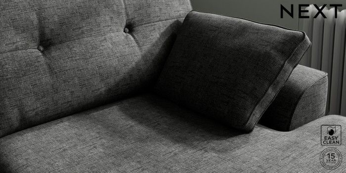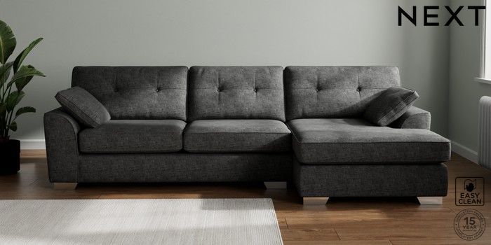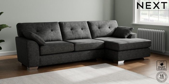 7.2.10 Buy Stamford Buttoned Back Large Sofa Chaise - Right Hand Boucle Weave Easy Clean Charcoal Grey Large Square Angle - Chrome Metal from the Next UK online shop Click here to use our accessible website