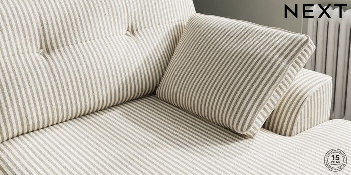 7.3.1 Buy Stamford Buttoned Back Large Sofa Chaise - Right Hand Chenille Stripe Moss Green Large Square Angle - Dark from the Next UK online shop Click here to use our accessible website
