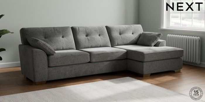 7.2.6 Buy Stamford Buttoned Back Large Sofa Chaise - Right Hand Chunky Chenille Dark Grey Large Square Angle - Brushed Brass from the Next UK online shop Click here to use our accessible website