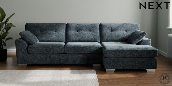 7.2.10 Buy Stamford Buttoned Back Large Sofa Chaise - Right Hand Chunky Chenille Dark Navy Blue Large Square Angle - Chrome Metal from the Next UK online shop Click here to use our accessible website