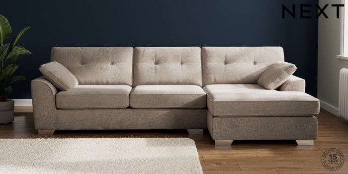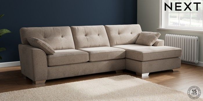 7.2.10 Buy Stamford Buttoned Back Large Sofa Chaise - Right Hand Chunky Chenille Light Dove Large Square Angle - Chrome Metal from the Next UK online shop Click here to use our accessible website