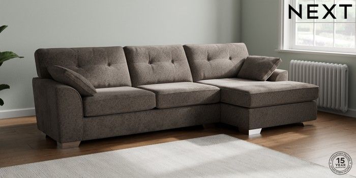 6.12.1 Buy Stamford Buttoned Back Large Sofa Chaise - Right Hand Chunky Chenille Mink Brown Large Square Angle - Chrome Metal from the Next UK online shop Click here to use our accessible website